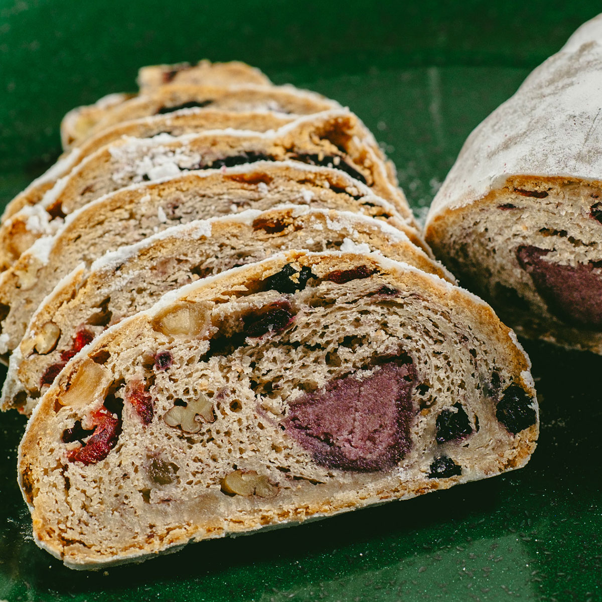 佐藤自然農園の完熟ブルーベリーを贅沢に使用し、自家栽培のブランド小麦「やまびこ麦」とともに仕上げた、東北の夏を感じる爽やかなシュトーレンです。