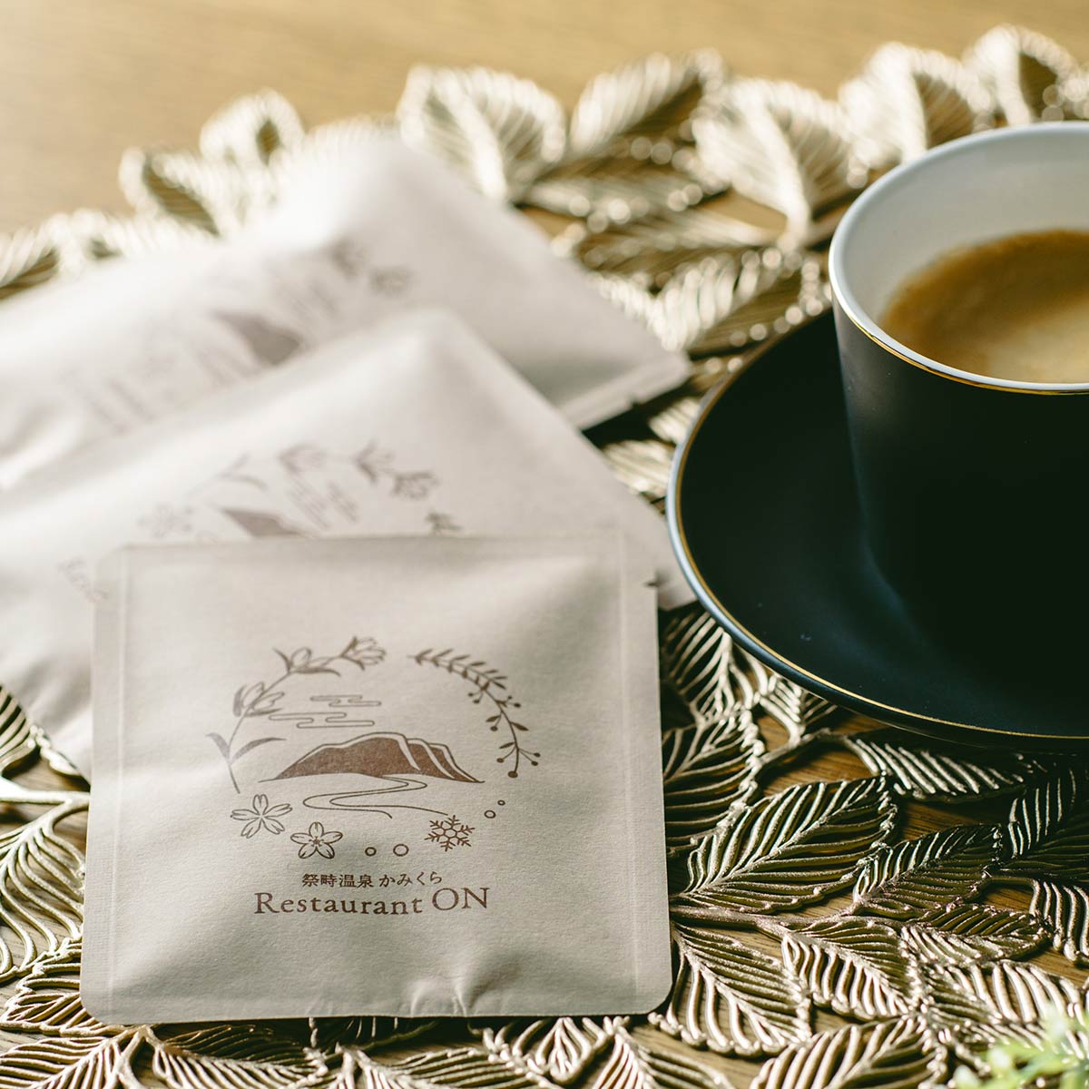 祭畤温泉かみくら Restaurant ON のシェフ SHOTA が調合比率を考えた、どんな方にも合いやすい中深煎りのブレンドです。