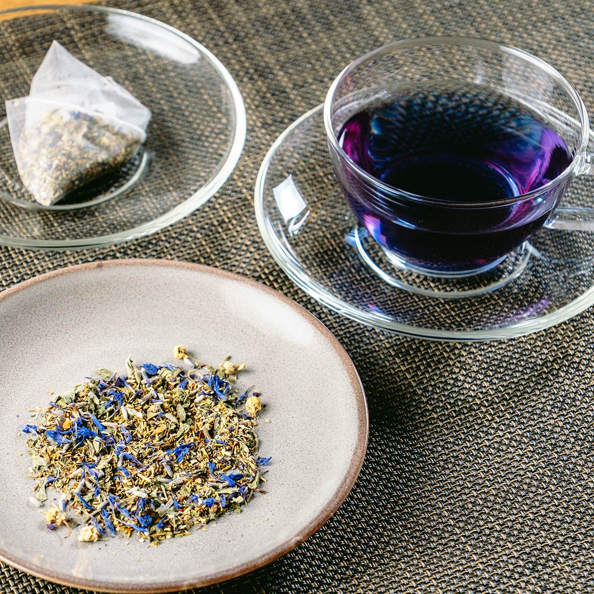 日本茶にたっぷりのハーブと青い花々をブレンドした、魅惑の「青いお茶」です。